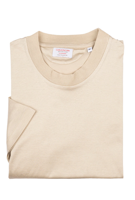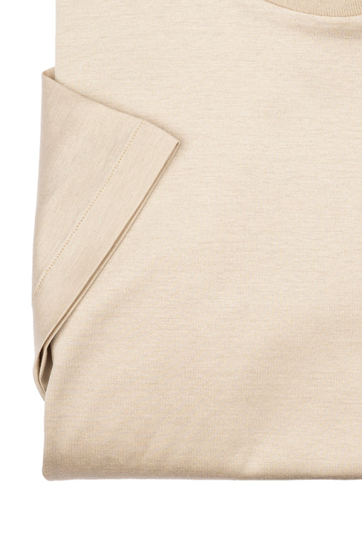 Short-sleeved T-shirt in super-soft interlock cotton. Designed with a classic crew neck collar, this T-shirt is knitted from fine Egyptian cotton, so it drapes effortlessly and comfortably. The extra-long staple and double mercerized cotton is characterized by outstanding softness and a silky feel that maintains with wear. Ideal for layering throughout the year.