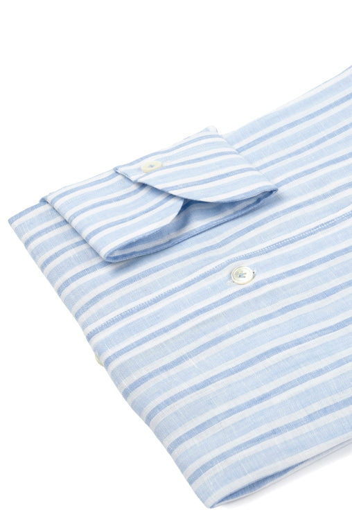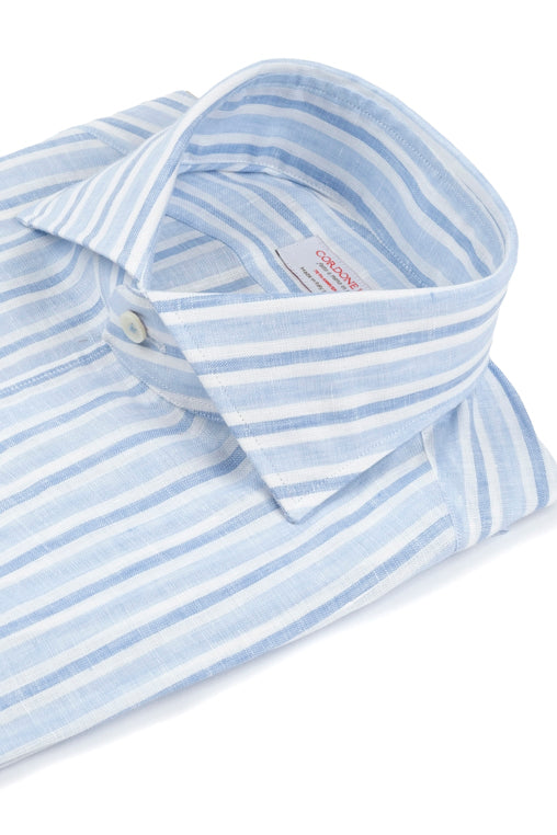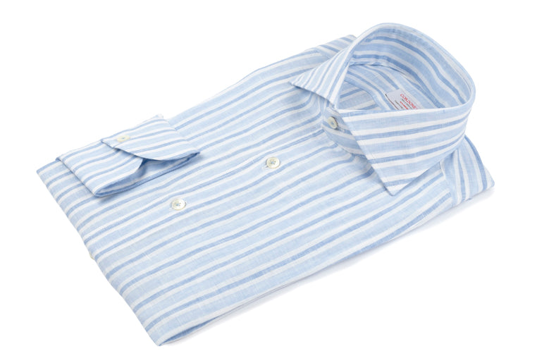 Linen Shirt White Blue and Light Blue Stripes  is a must for Cordone1956 shirts. You can wear this shirt on every summer day, for a look that is always in step with the times.