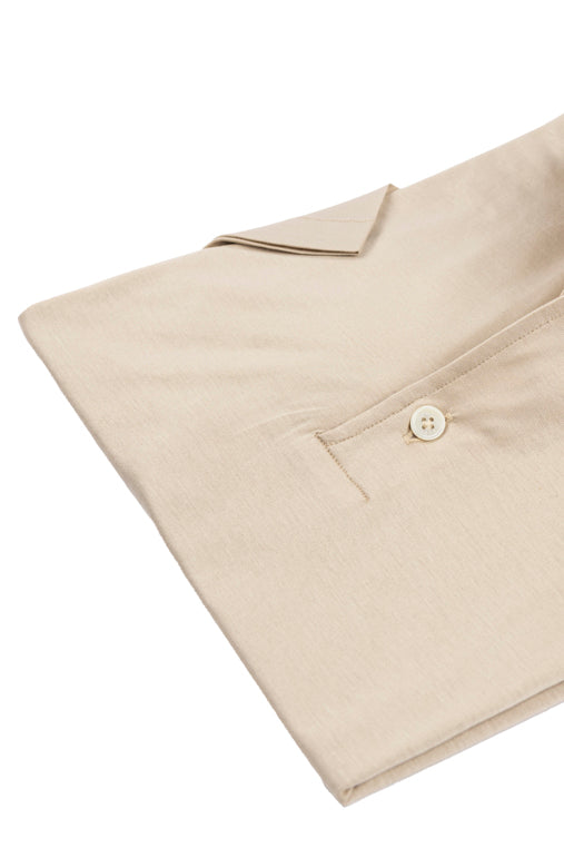The One-Piece Collar Polo in 120/2 Scottish Cotton is a leisure polo shirt in 120/2 double-twisted cotton, handcrafted in Italy at our Aielli factory. It stands out for its exclusive one-piece collar, which ensures a flawless natural curve, and is finished with side slits for fluid movement and unprecedented lightness against the skin.