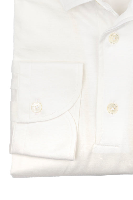 The One-Piece Collar Polo in 120/2 Scottish Cotton is a leisure polo shirt in 120/2 double-twisted cotton, handcrafted in Italy at our Aielli factory. It stands out for its exclusive one-piece collar, which ensures a flawless natural curve, and is finished with side slits for fluid movement and unprecedented lightness against the skin.