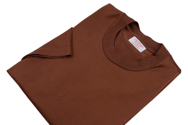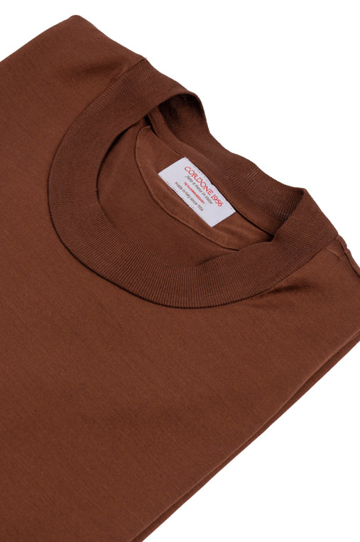 Short-sleeved T-shirt in super-soft interlock cotton. Designed with a classic crew neck collar, this T-shirt is knitted from fine Egyptian cotton, so it drapes effortlessly and comfortably. The extra-long staple and double mercerized cotton is characterized by outstanding softness and a silky feel that maintains with wear. Ideal for layering throughout the year.