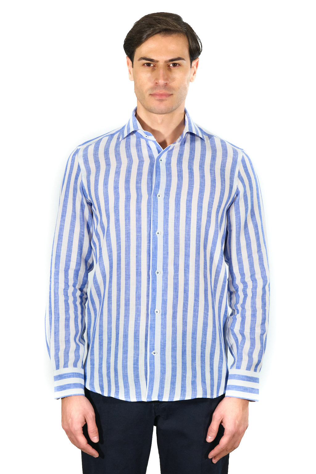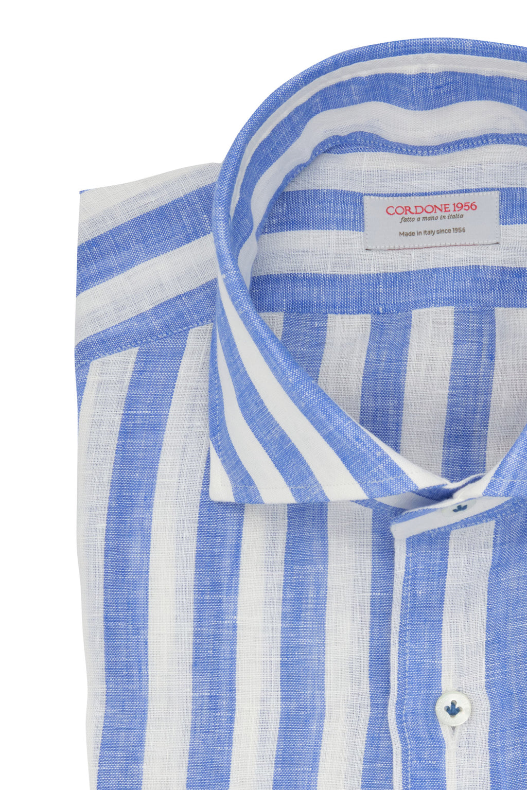 White and Azure Wide Striped Linen Shirt is a must for Cordone1956 shirts. You can wear this shirt on every summer day, for a look that is always in step with the times.