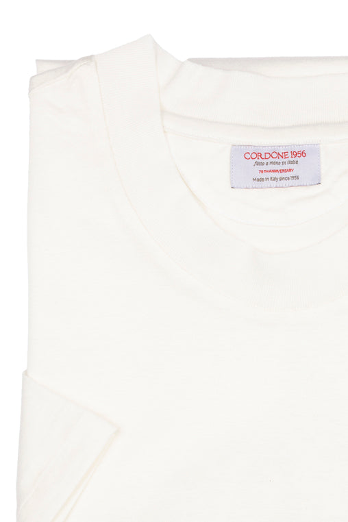 Short-sleeved T-shirt in super-soft interlock cotton. Designed with a classic crew neck collar, this T-shirt is knitted from fine Egyptian cotton, so it drapes effortlessly and comfortably. The extra-long staple and double mercerized cotton is characterized by outstanding softness and a silky feel that maintains with wear. Ideal for layering throughout the year.